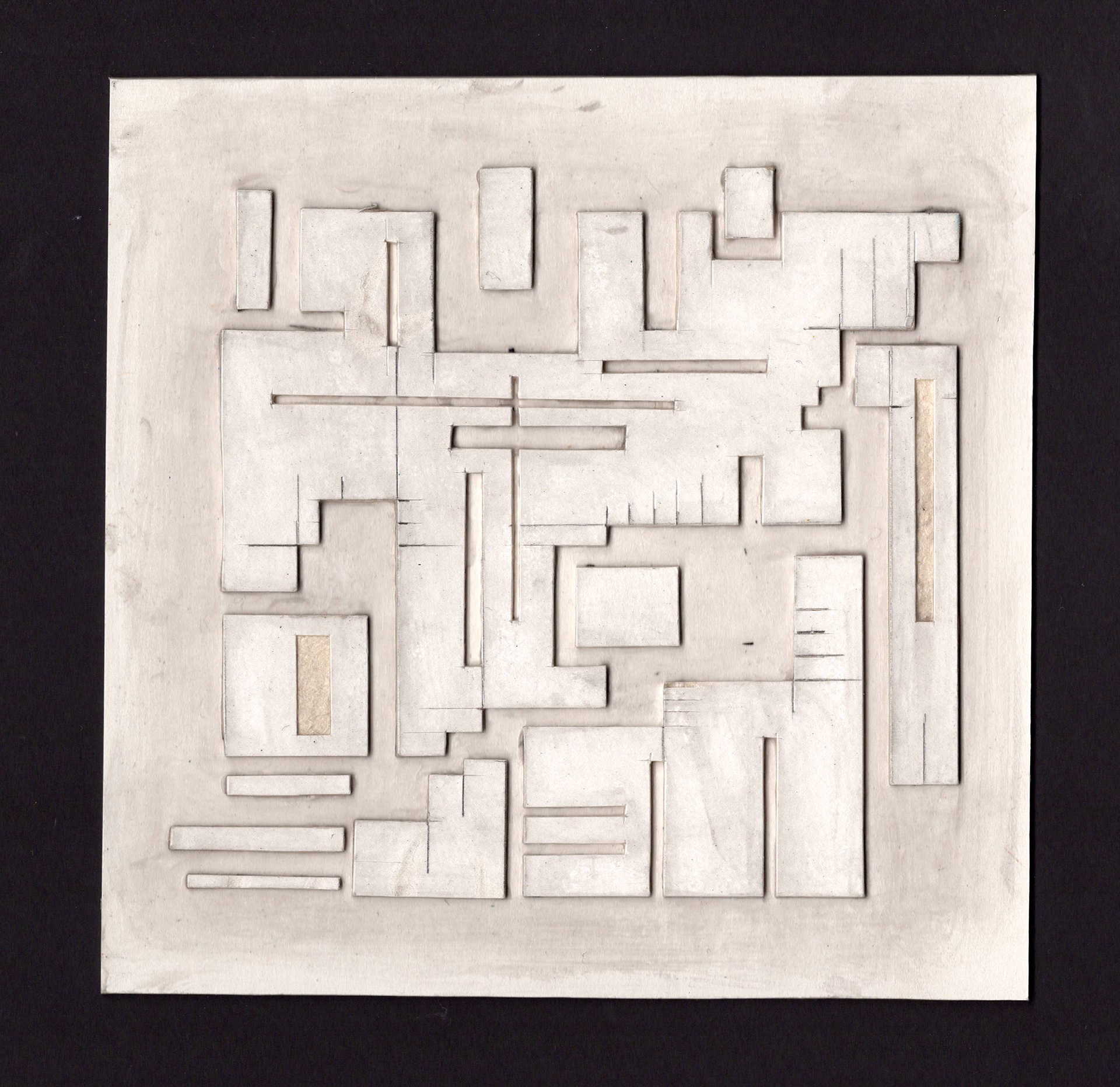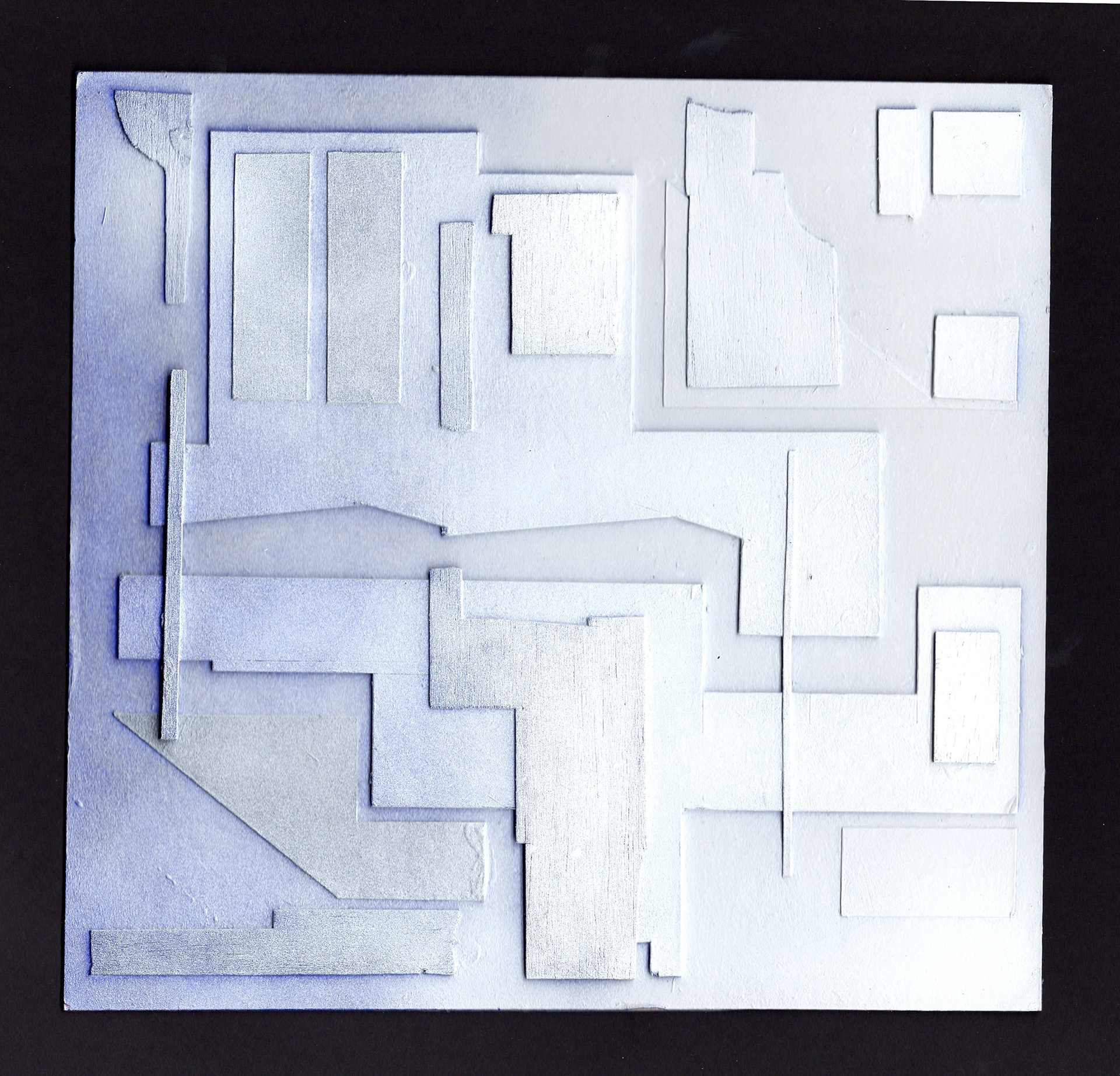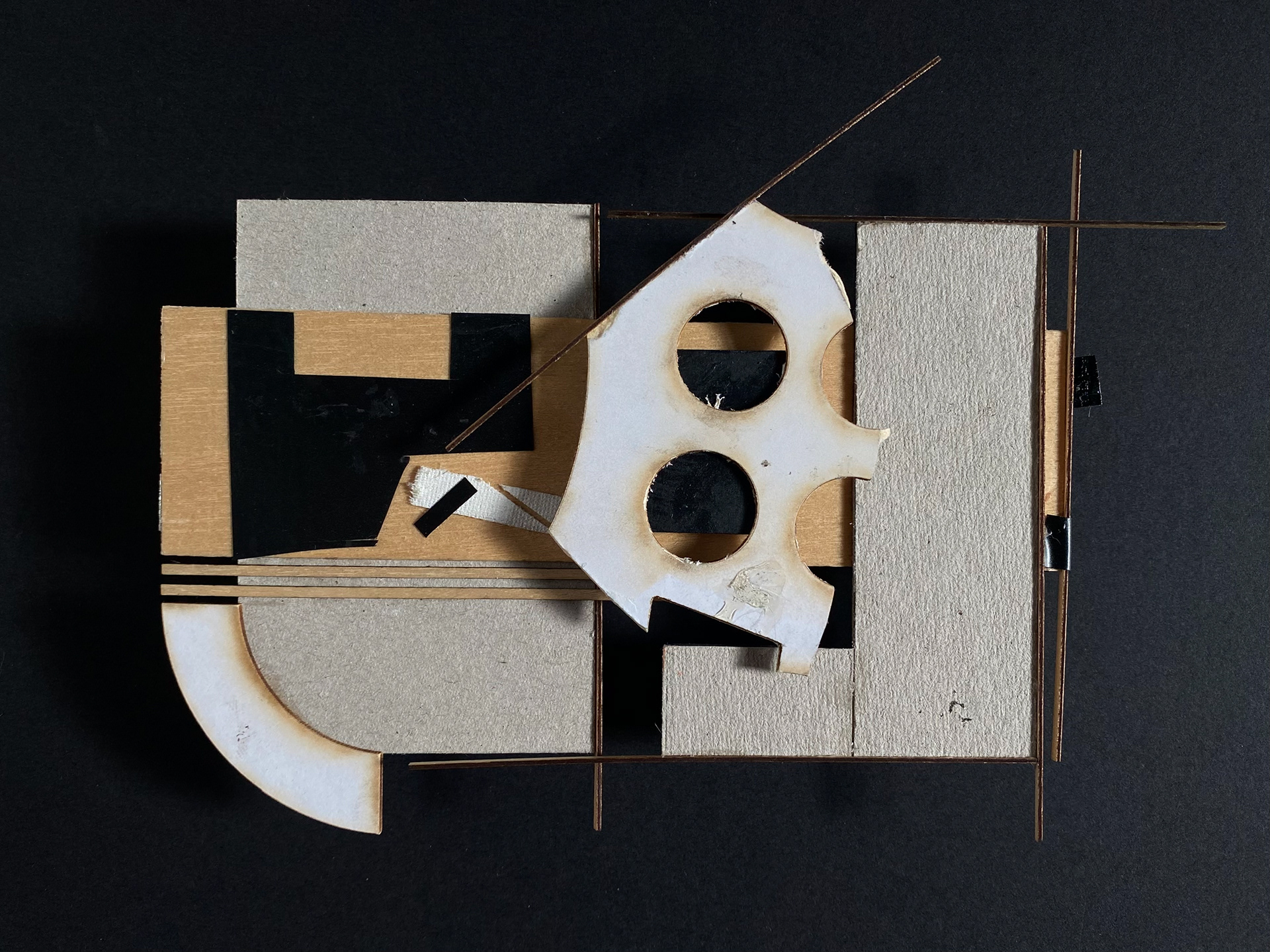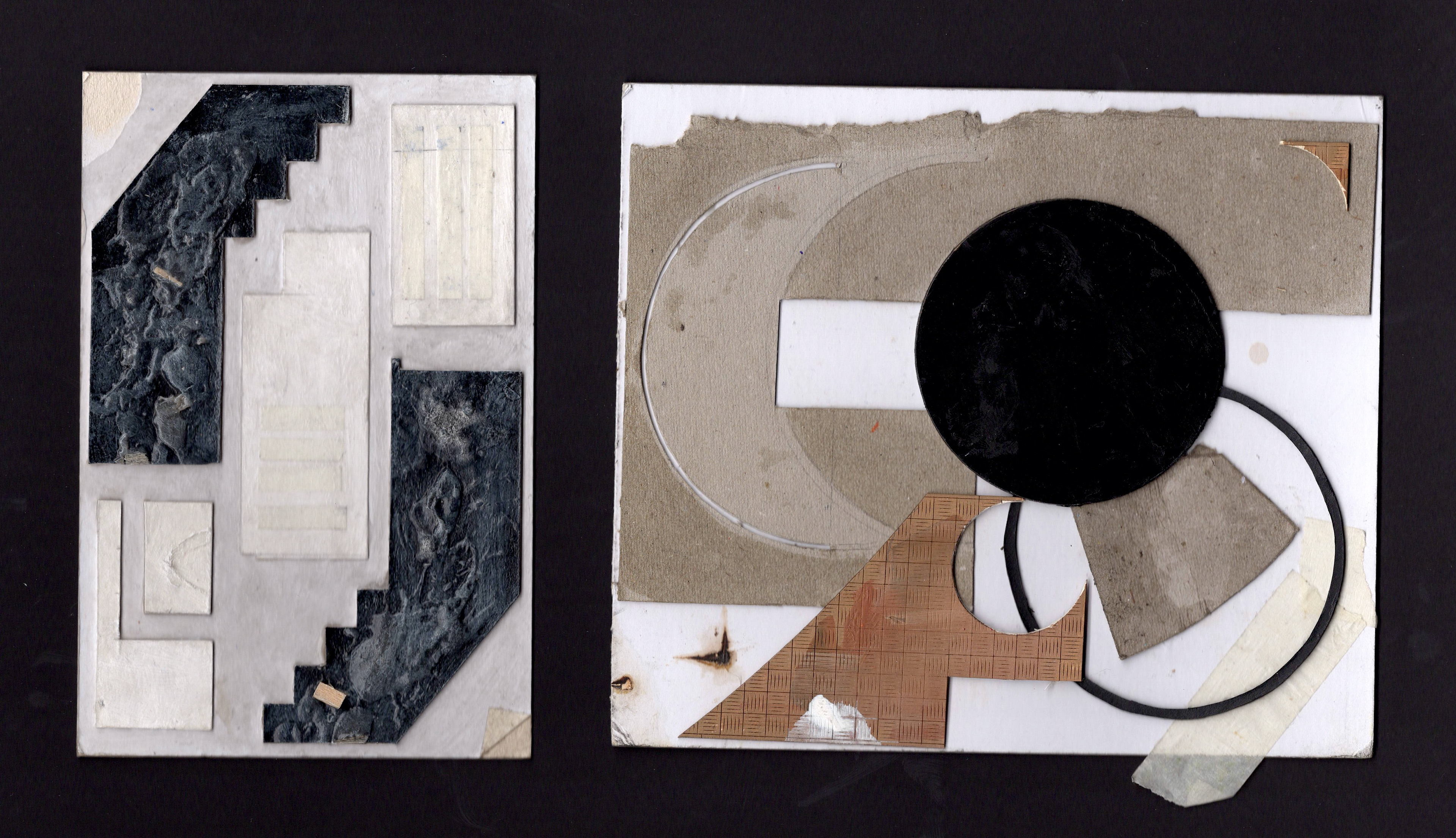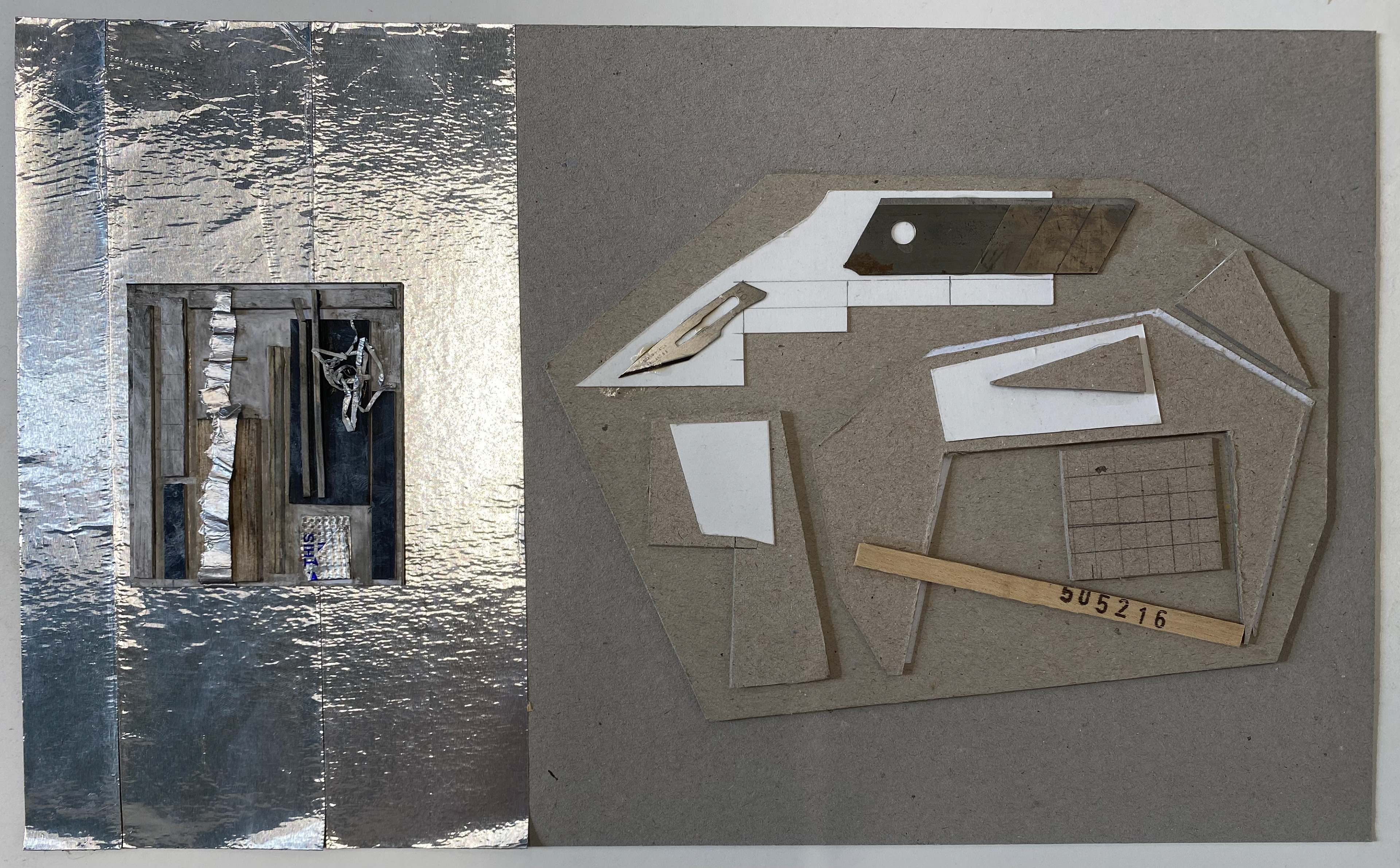 Collages made from leftover model-making materials. Various sizes, multimedia, 2025.