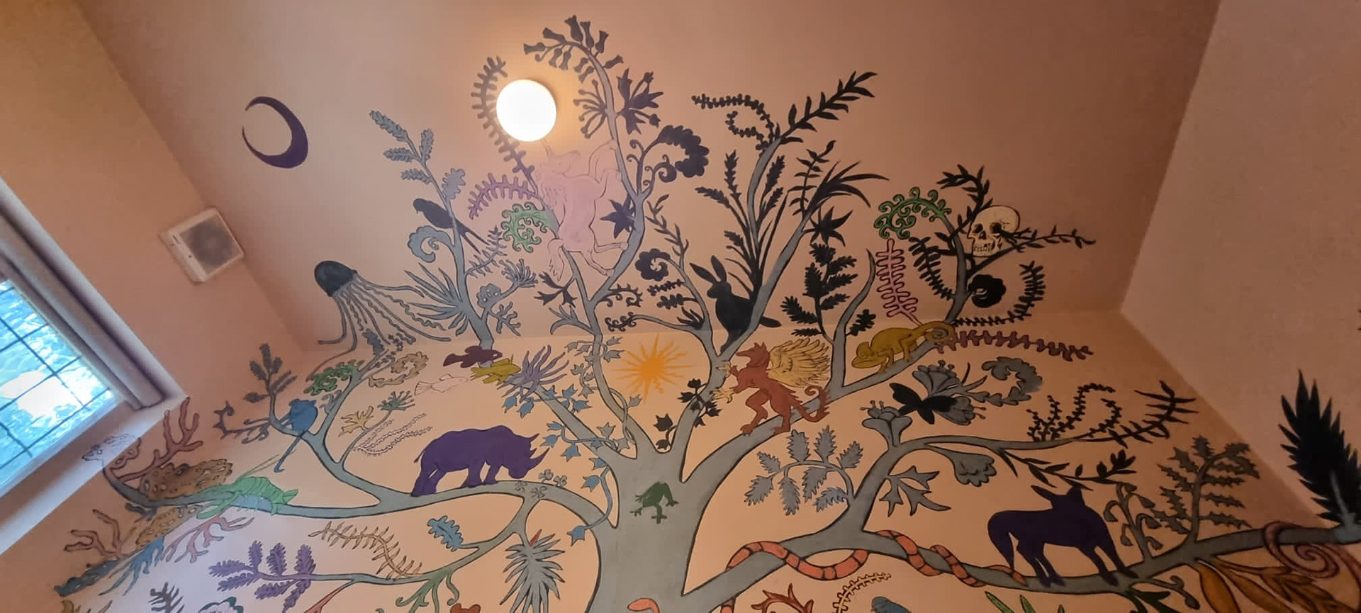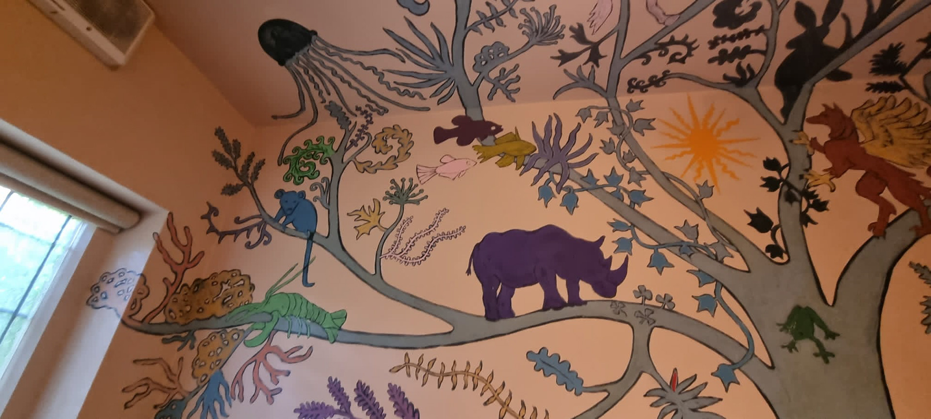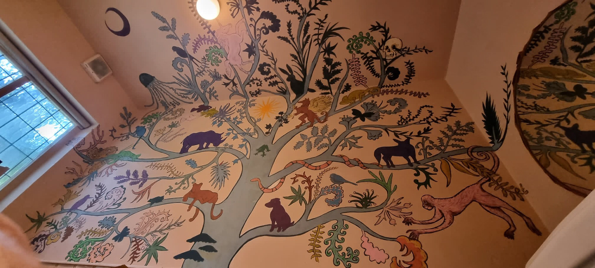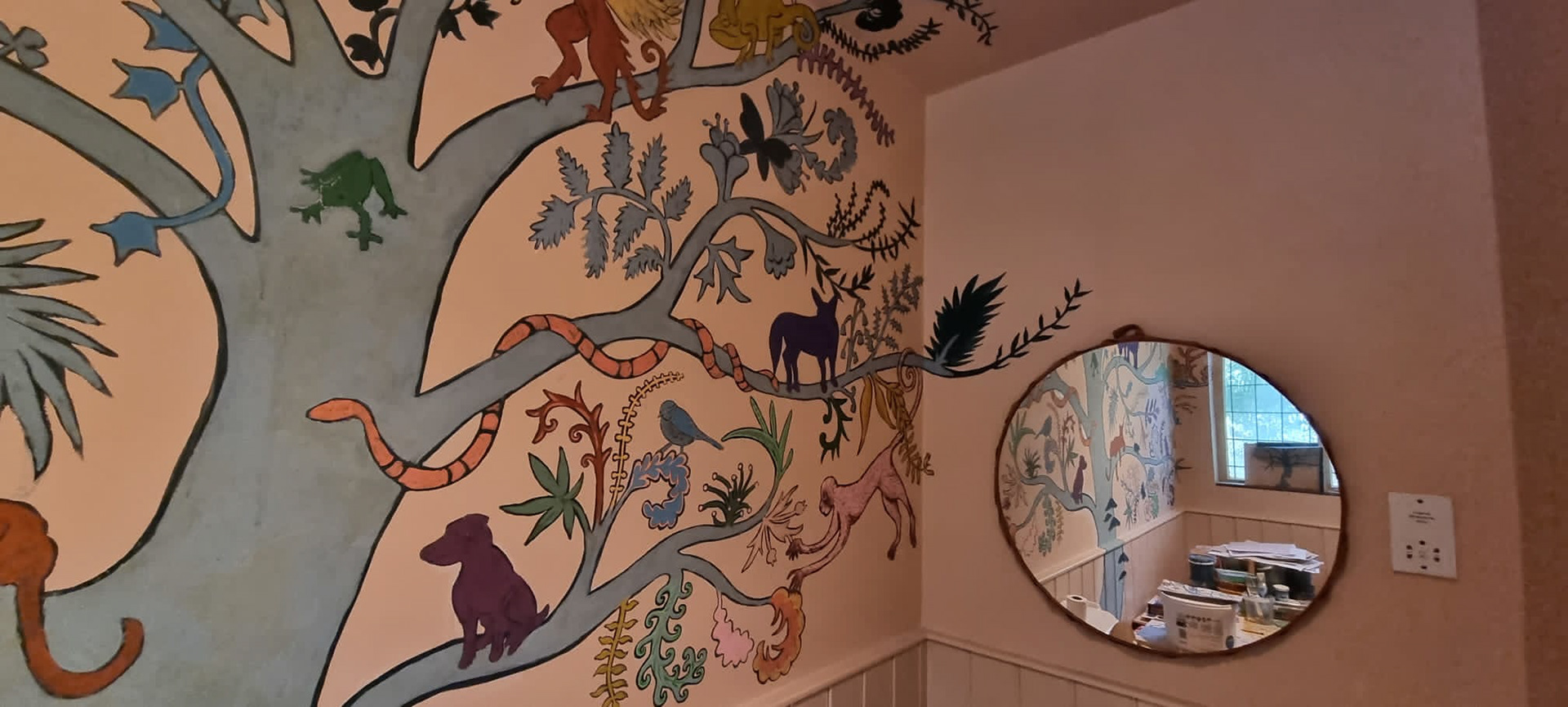 This mural a commission for a bathroom in Melbourne in the Midlands UK. It's still a work in progress. Watch this space for final pictures.